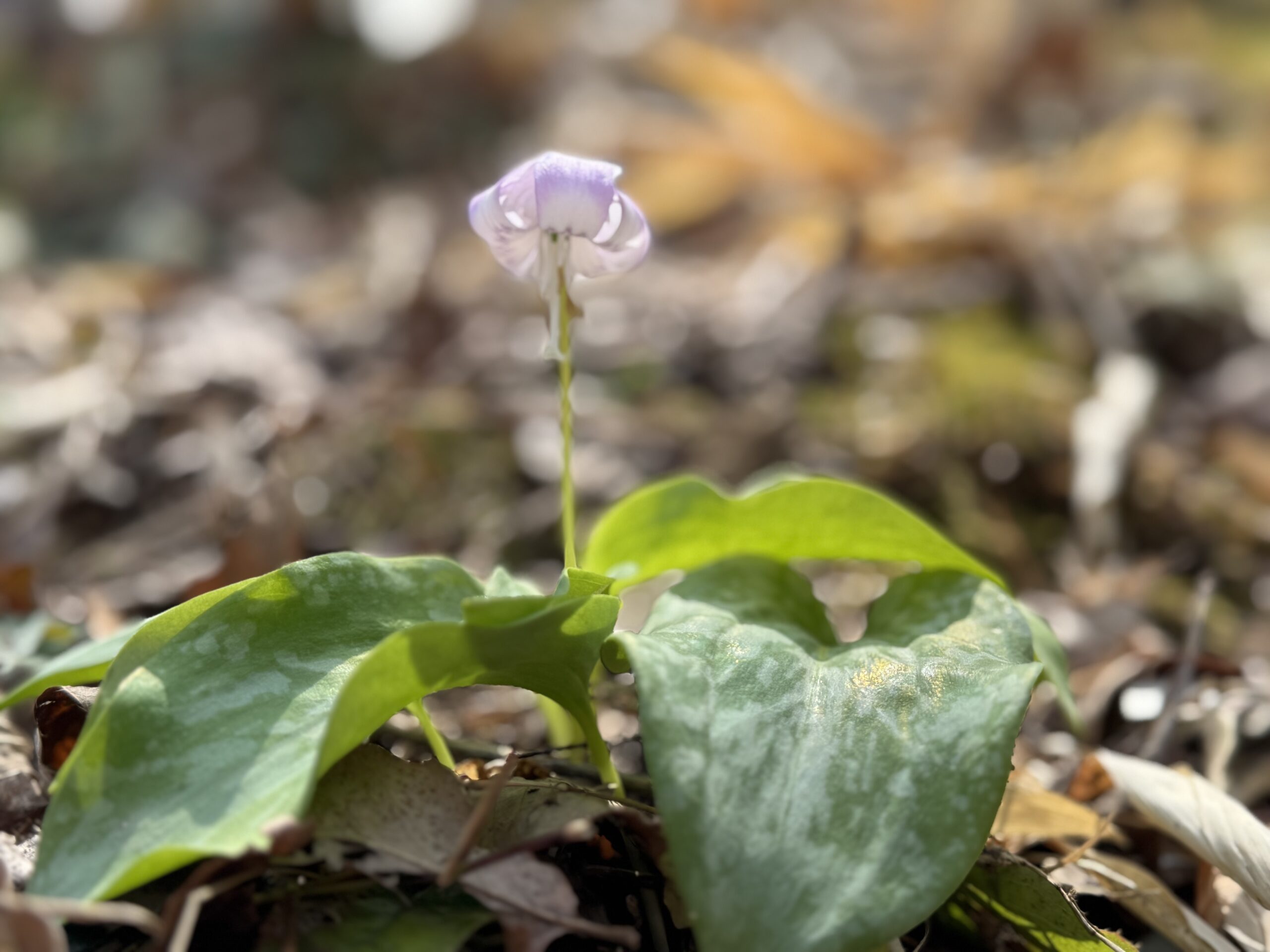 白に近いカタクリの花を発見
