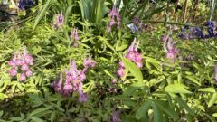 紅花ヤマシャクヤクのつぼみが沢山見られます。ミヤコワスレも満開です。ヒメサユリも次々開花ヤグルマソウクリンソウコアヤメ注意!キショウブシラユキゲシミズキ?ミズキ